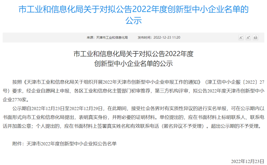 為引導中小企業(ye)(ye)向專業(ye)(ye)化(hua)、精(jing)細化(hua)、特色化(hua)、新(xin)穎(ying)化(hua)方向發(fa)展(zhan),促進中小企業(ye)(ye)高質量發(fa)展(zhan),提(ti)升中小企業(ye)(ye)創新(xin)能力和專業(ye)(ye)化(hua)水平。近日,天津市工業(ye)(ye)和信息化(hua)局公示了2022年度創新(xin)型中小企業(ye)(ye)名單。