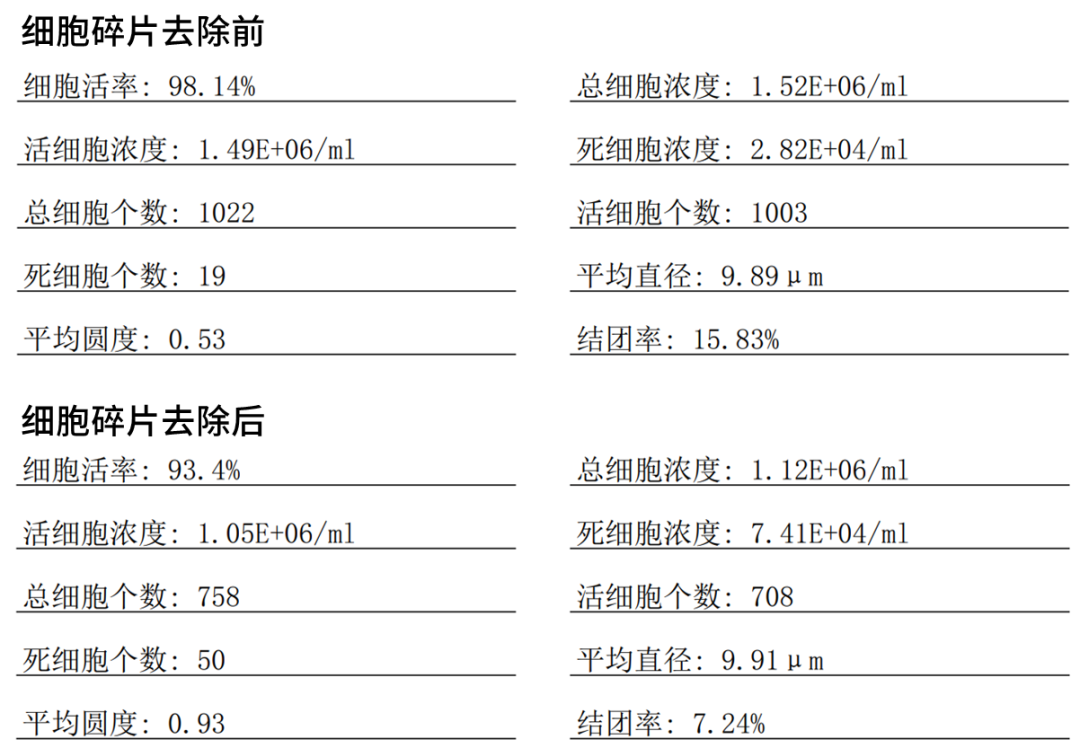 表2 利用細胞碎片(pian)去除(chu)試劑盒(he)處理單(dan)細胞懸液前后樣(yang)本有核率